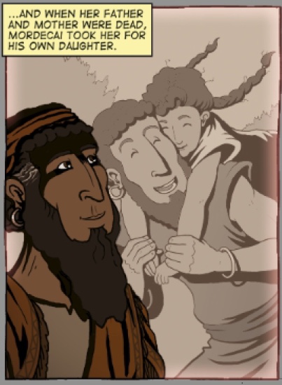 Through such portrayals, readers of the comic are drawn immediately and irresistibly into the intrigue between Esther, Ahasuerus, Mordecai, and Haman, and thus right into the fast-paced story itself. But as it should be, Esther herself is at the center of the book and the story. Her portrayal, in which she develops from a little girl in pigtails to a stunning natural beauty who is also a woman of strength, courage, and character, is the highlight of the comic. You’ll have to get the book yourself to see this entire development unfold. But here’s a preview of how it begins:
