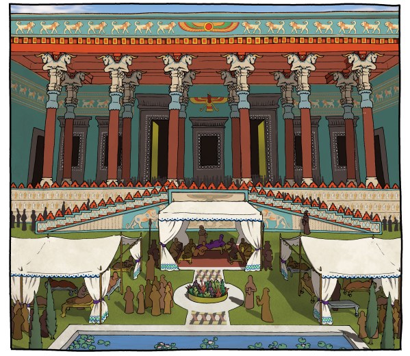Esther, the next volume in the Word for Word Bible Comic series of graphic-novel presentations of biblical books, is now available. I find it another tour-de-force by the artist, Simon Amadeus Pillario. It’s particularly impressive that he has researched and portrayed a third cultural and historical context, that of the Persian Empire, after the land of Canaan in the settlement period for the Joshua, Judges, and Ruth volumes and the first-century Mediterranean world for Mark. All the sumptuousness of the Persian court, where the story of Esther takes place, comes through in the detailed and historically accurate artwork.